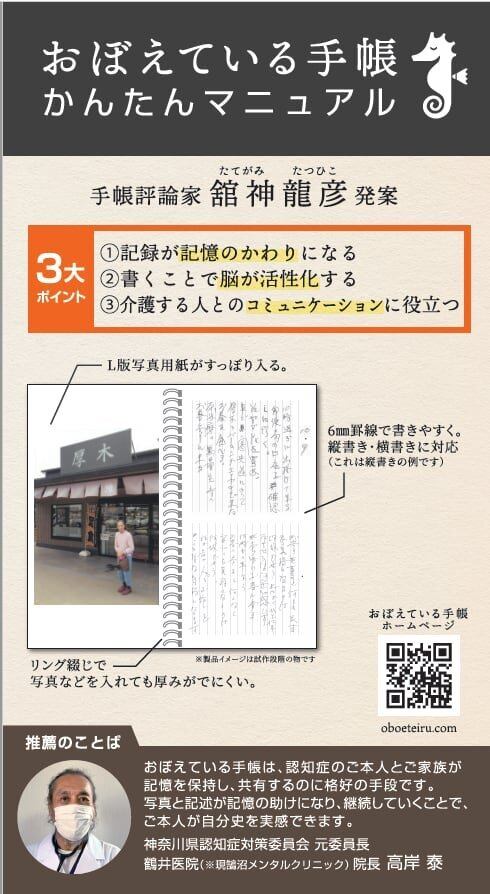 認知症の人でも記憶が持てる「おぼえている手帳」の説明は以下のホームページをご覧ください。